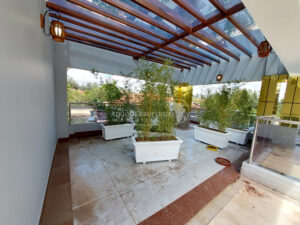 The interior boasts a bright, airy lounge, a dedicated dining area, and a sleek, modern kitchen complete with a pantry and laundry area. All five ensuite bedrooms offer comfort and luxury, highlighted by the master suite which features a walk-in closet and a lavish jacuzzi-equipped bathroom. Step outside to enjoy a stunning rooftop terrace ideal for entertaining, a shared gazebo, and a beautifully landscaped garden.